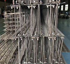 上、下弦鋼筋:采用三級熱軋盤螺鋼筋HRB400級、或冷軋帶鋼筋CRB550級。腹桿鋼筋:采用冷軋光圓鋼筋TD∨、TDM底模鋼板:根據(jù)用途不同,可采用鍍鋅鋼板或冷軋鋼板,常用厚度為0.4-0.5mm雙面鍍鋅量120gm。
